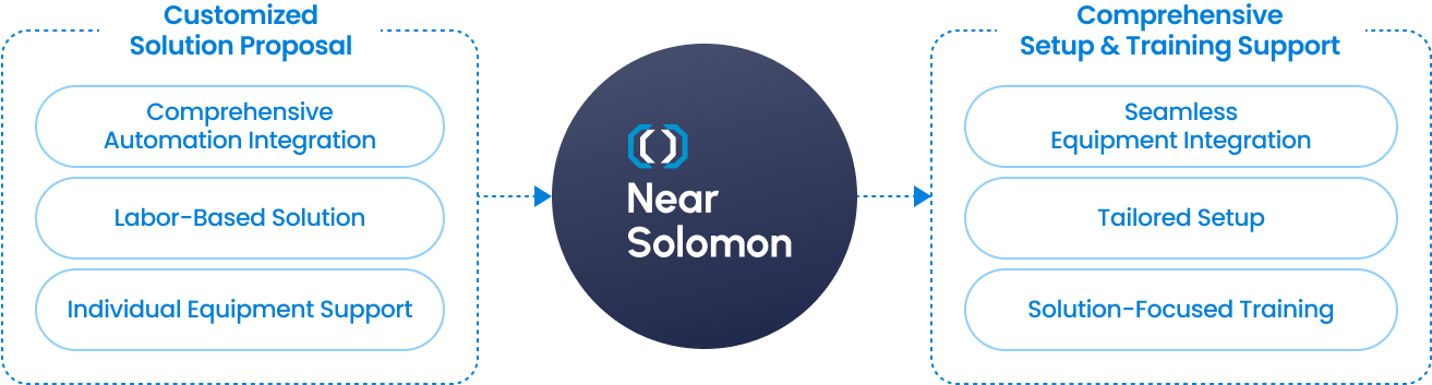 Enhance logistics efficiency with Near Solomon, regardless of warehouse size or type, while maintaining your existing equipment. |